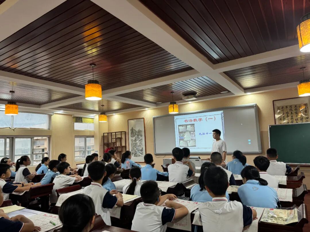 作为江西省首批“写好中国字”书法教育示范校,九江市第十一中学积极开展书法教育进校园工作,在初一年级开设了书法精品课,邀请九江市书法家协会赵一墨老师长期为学生授课。