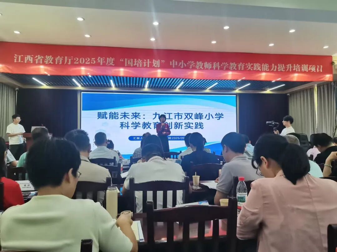 近日,在江西省教育厅主办的2025年度“国培计划”中小学教师科学教育实践能力提升培训班上,九江市双峰小学校长吴盼军作专题发言,分享了学校在科学教育领域的创新实践与成果。