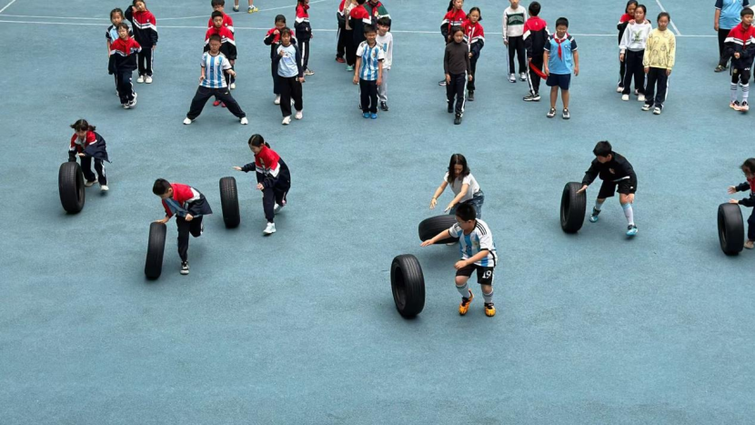 各类集体运动项目巧妙融合团队协作、体能挑战与趣味体验,力求让每一位学生都能找到属于自己的舞台。绿茵场上,“校园足球班超联赛”激战正酣,小球员们带球、传球、射门,架势十足;篮球架下,“校园篮球班BA联赛”争夺激烈,每一次得分都引来阵阵欢呼。