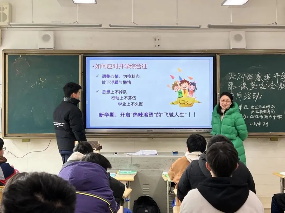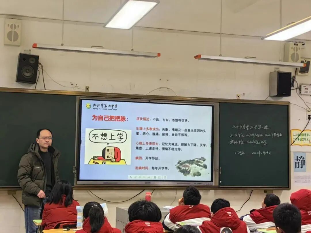 为让学子们从舒适的寒假生活顺利地过渡到紧张忙碌的学校生活中来 让学生在日常行为规范、安全意识等方面尽快收心九江市第七中学各班召开了春季开学收心主题班会各班班主任围绕着“回顾寒假生活”、“积极调整情绪”“新学期新计划”等几方面展开同学们回顾和梳理了自己寒假生活的点点滴滴分享了寒假里的趣事、乐事班主任老师也分享了自己的寒假故事快乐情绪在课堂里氤氲开来师生之间的距离一下子拉近了。