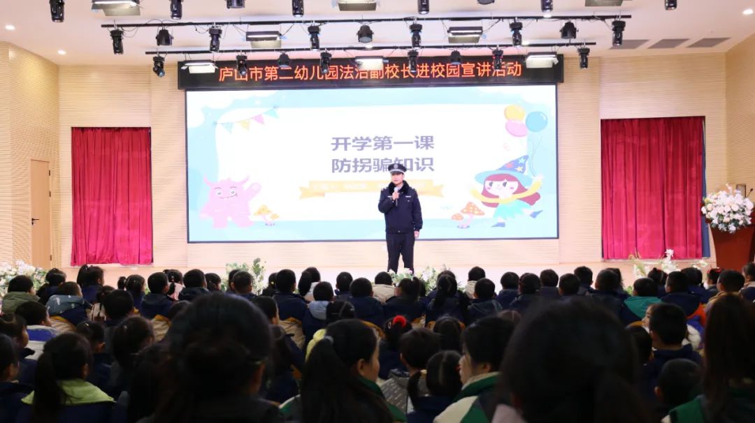 庐山市第二幼儿园邀请法治副校长走进校园开展了以“防拐骗”“反诈”“扫黑除恶”为主题的“开学第一课”宣讲活动课堂上根据幼儿的年龄和认知特点用通俗易懂的语言、生动形象的故事视频以及情境游戏等方式向孩子们讲述防拐骗安全知识告知他们一些防骗小技巧引导孩子们学会自我保护小朋友们积极参与互动,踊跃回答收到了良好的效果同时,还向老师和家长介绍了一些当下较为流行的诈骗手段提高了大家的安全防范意识。