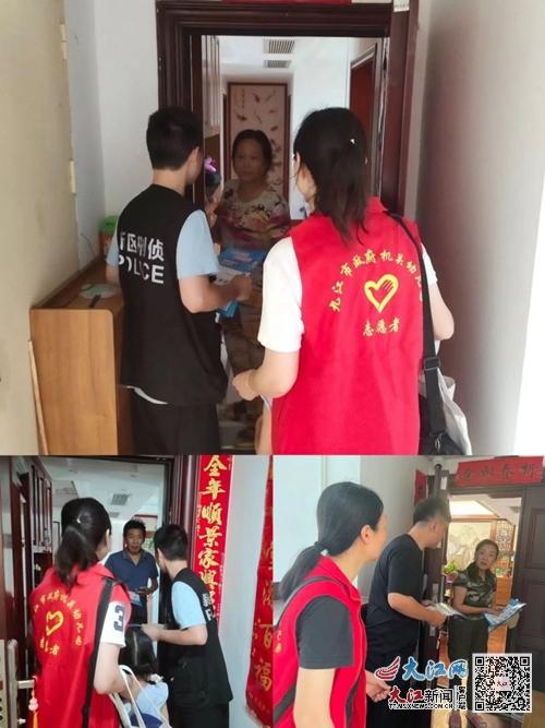为深入开展社区帮建活动,做好电信网络诈骗防范宣传工作,营造全民反诈的良好氛围,切实提高人民群众识骗、防骗的能力。7月28日,九江市政府机关幼儿园党支部联合八里湖新区公安分局,深入九龙新城社区,与社区干部一道入户开展反诈防诈知识宣传活动。